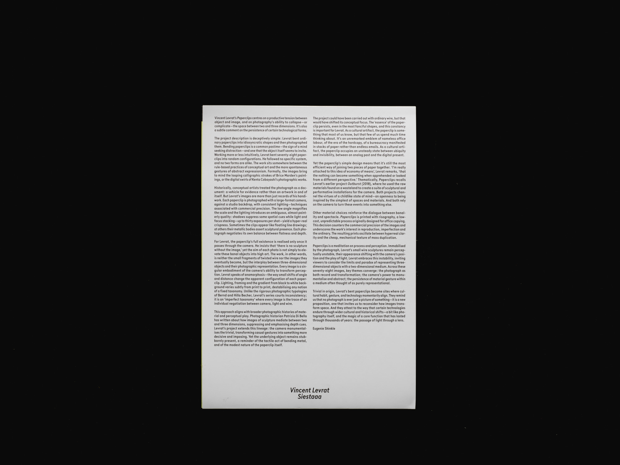 Paperclips is a collection of bent and photographed paperclips. This cultural artifact, seemingly trivial and often twisted out of boredom or anxiety becomes raw material for a work exploring the space between constraint, process, and outcome. Rather than aiming for form or utility, it embraces gesture as meditative practice and reflects on sculpture and photography.